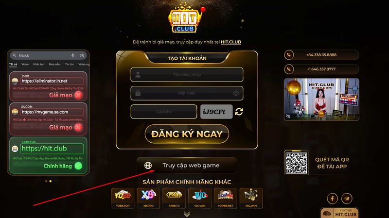 - Click vào mục Truy cập web game trên nền tảng Hitclub.